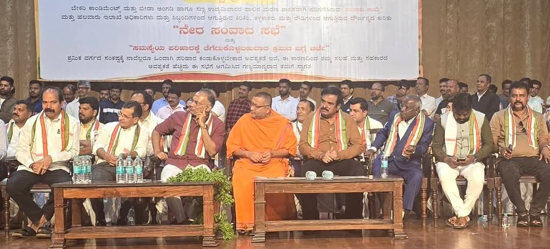 ವಸಂತನಗರದ ಡಾ. ಬಿ.ಆರ್. ಅಂಬೇಡ್ಕರ್ ಭವನದಲ್ಲಿ ಕರ್ನಾಟಕ ರಾಜ್ಯ ಕಾರ್ಮಿಕ ಪರಿಷತ್ತಿನ ರಾಜ್ಯಾಧ್ಯಕ್ಷ ಡಾ.ರವಿ ಶೆಟ್ಟಿ ಬೈಂದೂರ್ ಸಾರಥ್ಯದಲ್ಲಿ ನಡೆದ “ಶ್ರಮಿಕರ ಸಂವಾದ ಸಭೆ”ಯಲ್ಲಿ ಕಿಕ್ಕಿರಿದು ತುಂಬಿದ್ದ ಸಂತ್ರಸ್ತರ ಜೊತೆ ಸಂವಾದ ನಡೆಸಿ ಮಾತನಾಡಿದ ಅವರು, ಶ್ರಮಿಕರ ಹಿತ ರಕ್ಷಣೆಗೆ ಸರ್ಕಾರ ಸದಾ ಬದ್ಧ. ಬೇಕರಿ ಕಾಂಡಿಮೆಂಟ್ಸ್ ಮತ್ತು ಬೀಡ ಅಂಗಡಿ ಹಾಗೂ ಸಣ್ಣ ಉದ್ಯಮೆದಾರರ ಮೇಲೆ ನಿರಂತರವಾಗಿ ನಡೆಯುತ್ತಿರುವ ದೌರ್ಜನ್ಯ ಖಂಡನೀಯ. ಇಂತಹ ಪ್ರಕರಣಗಳು ಕಂಡು ಬಂದಲ್ಲಿ ಸರ್ಕಾರ ತಪ್ಪಿತಸ್ಥರ ಮೇಲೆ ಕಠಿಣ ಕ್ರಮ ತೆಗೆದುಕೊಳ್ಳಲಿದೆ ಎಂದು ಹೇಳಿದರು.